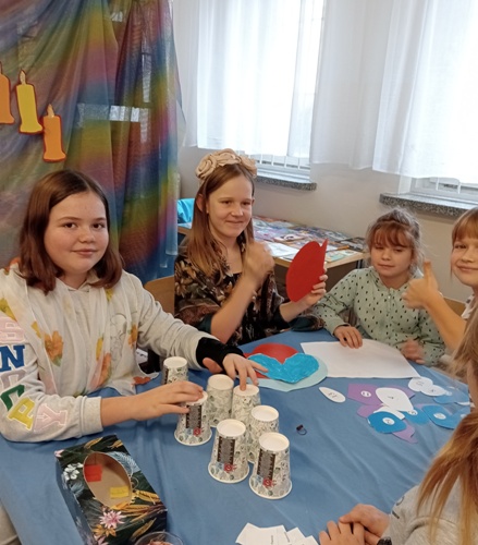 W naszej bibliotece zorganizowano także andrzejkowe wróżby. Największym zainteresowaniem cieszyło się papierowe serce z imionami. Przebijając je szpilką, można było poznać imię przyszłej sympatii. Wróżba z kostek do gry i magiczne kubeczki również wyzwalały u uczniów wiele emocji . Te i inne zabawy andrzejkowe umilały przerwy międzylekcyjne naszym czytelnikom. O odpowiedni nastrój zadbały nasze wróżki, które pilnowały aby każdy mógł poznać swoją „przyszłość’.