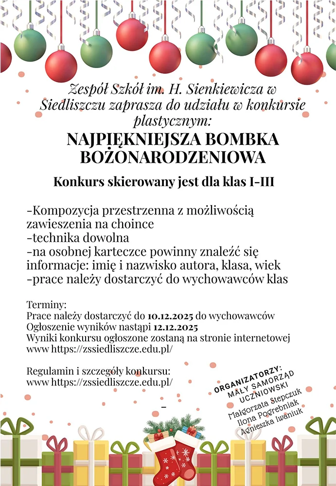 3. Wyniku konkursu zatoną ogłoszone na stronie www https://zssiedliszcze.edu.pl/
