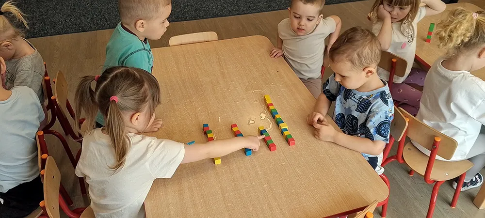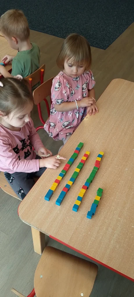 Zabawy matematyczne rozwijają u dzieci logiczne myślenie, inspirują do poszukiwania rozwiązań dlatego w naszym przedszkolu podejmujemy wiele inicjatyw związanych z edukacją matematyczną. W ramach realizacji programu grantowego „Rosnę z matematyką” w miesiącu marcu przedszkolaki z grupy Malinek rozwijały umiejętność liczenia, określania liczebności zbiorów oraz porównywanie ich liczebności. Poznały podstawowe figury geometryczne. Miały okazję określania i porównywania długości oraz wagi przedmiotów.