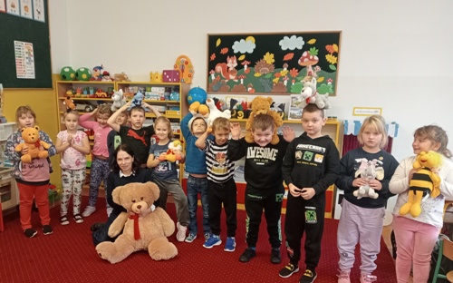 Po prelekcji nadszedł czas na zagadki i „misiowe zabawy”. Na zakończenie dzieci stwierdziły, że miś jest niezastąpiony i mimo innych atrakcyjnych zabawek moda na ukochanego misia nie przemija.