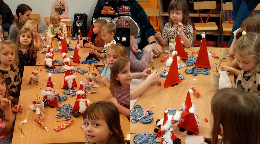 Dnia 12 grudnia 2025 rokiem naszym przedszkolu gościliśmy pracowników jak również podopiecznych Warsztatu Terapii Zajęciowej w Majdanie Zahorodyńskim. Przedszkolaki z grup Malinki i Jagódki w miłej życzliwej atmosferze wykonały piękne i oryginalne ozdoby świąteczne. Mamy nadzieję, że spotkanie na długo pozostanie w pamięci odwiedzających nas osób, a dzieci uwrażliwiło i otworzyło na potrzeby ludzi z niepełnosprawnościami.